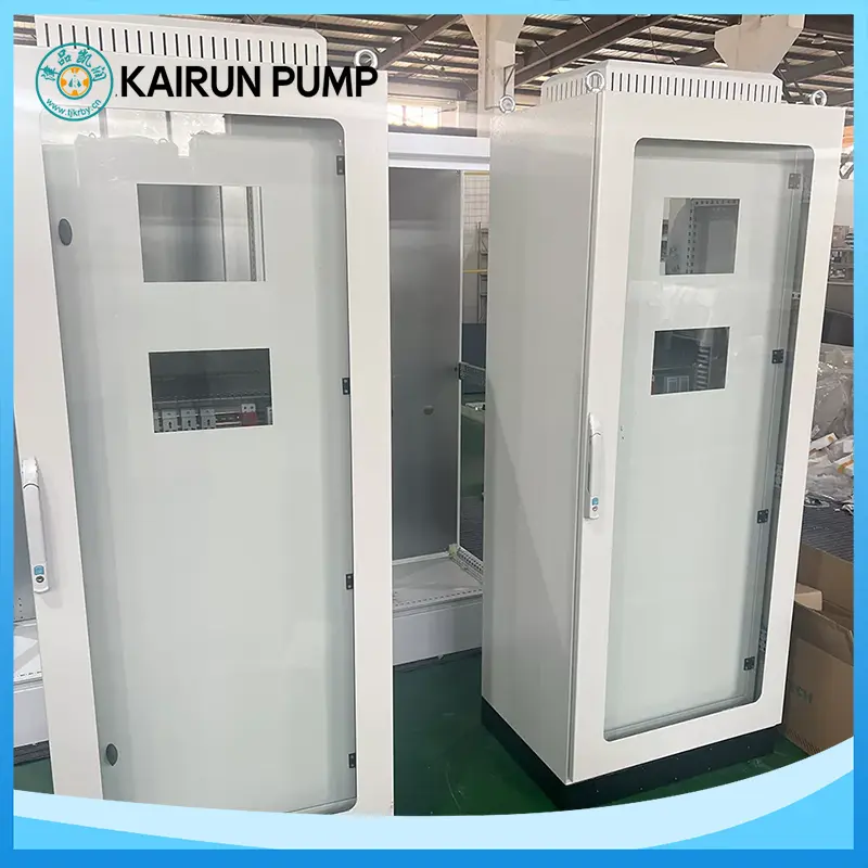 कॅबिनेट बॉडी उच्च-गुणवत्तेचे कार्बन स्टील किंवा स्टेनलेस स्टीलचे बनलेले आहे, उच्च-व्होल्टेज इलेक्ट्रोस्टॅटिक फवारणीसह उपचार केले जाते, IP54 संरक्षण रेटिंग प्राप्त करते. हे धूळरोधक आणि ओलावा-प्रूफ आहे, घरातील आणि बाहेरच्या स्थापनेसाठी योग्य आहे. अंतर्गत घटक सुबकपणे मांडलेले आहेत, आणि वायरिंग मजबूत आहे, दीर्घकालीन स्थिर ऑपरेशन सुनिश्चित करते. कंट्रोल कॅबिनेटची पॉवर रेंज 15-90kW आहे, पंप, पंखे, कंप्रेसर आणि कन्व्हेयर यांसारखी लवचिकपणे आधार देणारी उपकरणे, ती HVAC, औद्योगिक उत्पादन, कृषी सिंचन आणि अग्निसुरक्षा प्रणालींसाठी आदर्श बनवतात.